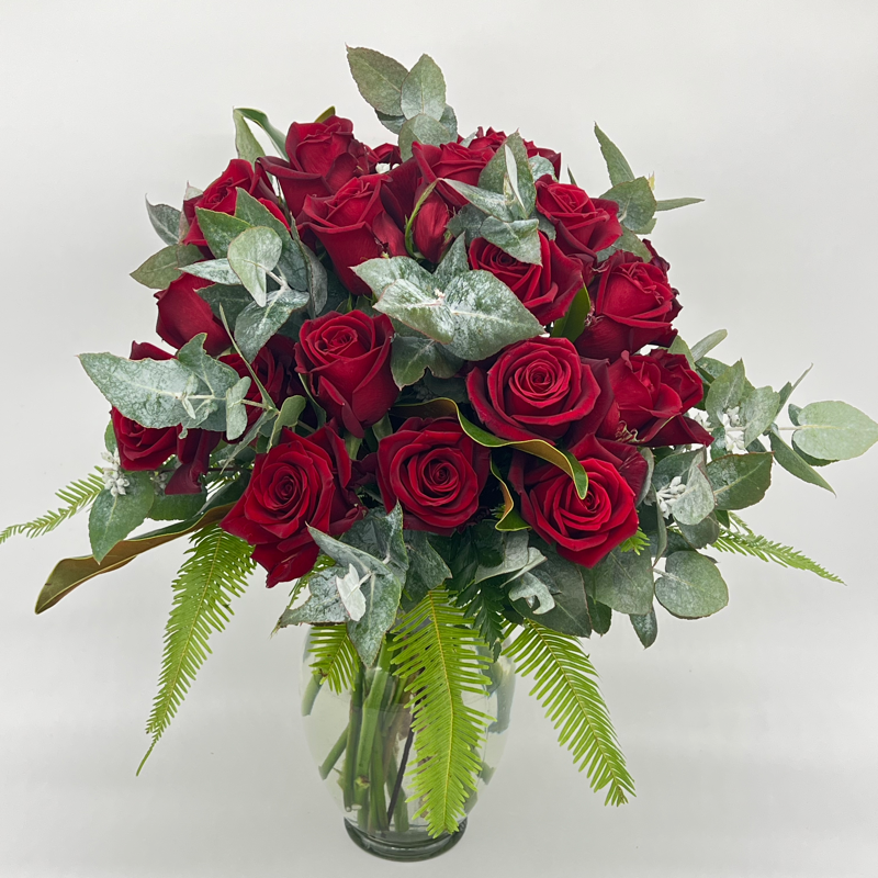 Bouquet of 24 Premium Roses | with Foliage